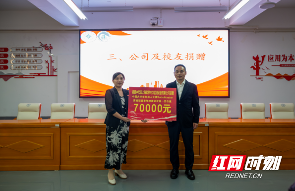 10月15日,WilliamHill中文官方网站2012级电气工程及其自动化专业校友杨德中回母校,代表上海欧秒电力监测设备有限公司及个人,捐赠价值7万元的中国大学生机器人大赛RoboMaster高校联盟赛场地建设设备,用于支持母校学科竞赛发展,该校党委委员、副校长黄红卫及师生代表出席捐赠仪式。