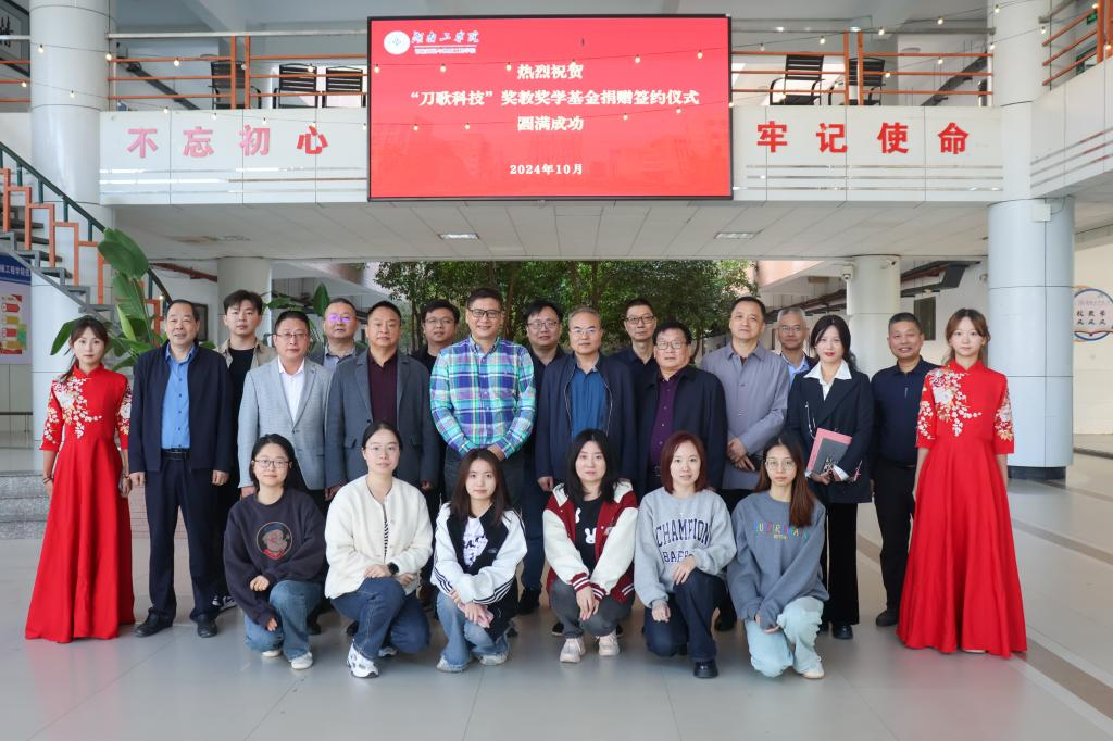 吕路表示,此次捐赠是在母校50周年校庆之际对母校教育培养的感恩回馈,希望这颗感恩的种子可以落地生根,培养更多的优秀学子,同时促进企业与学校的深入合作,齐心协力在科学技术研发中共创新成绩、新突破! 仪式上,双方签订了“刀歌科技”奖教奖学基金捐赠协议。此次设立的奖教奖学金,旨在激励湖工学子勤奋学习,鼓励教师专注教学,从而显著提升学校的教学质量和人才培养水平。(文/王本强 图/黄子彬 审稿人/一审:罗维 二审:罗晓君 三审:贺令亚)