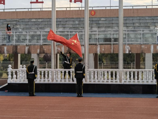 在威武雄壮的国歌声中,国旗护卫队迈着有力的正步走过田径场,全体师生凝视着冉冉升起的五星红旗,抒发着对伟大祖国的无限热爱。党委书记张帆围绕“抗疫一线,党旗红心”的主题,号召同学们紧跟党走,齐心抗疫,并提出三点要求:一是毫不放松做好疫情防控工作;二是认真严肃对待学校疫情防控要求;三是深刻理解党员战“疫”先锋精神。同时要求同学们谨记 “勤洗手、多通风、戴口罩、不聚集” 12字口诀,用心感悟,用爱渗透,众志成城,共同打赢这场没有硝烟的战争。