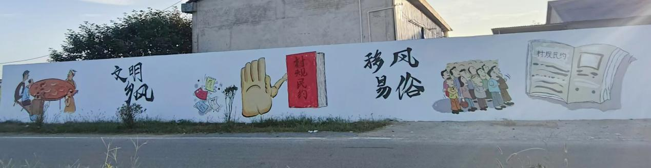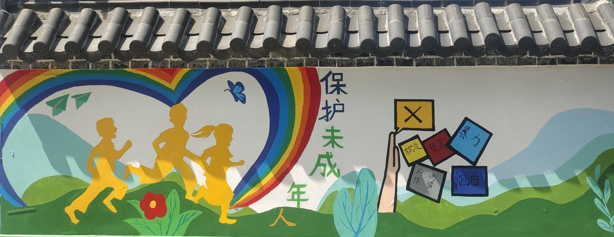团队13名师生在当地村干部的带领下,经过走访与沟通,结合当地实际,倾听民声,最终确定了“未成年人保护”“环境保护”“移风易俗”三个特色墙绘主题。烈日炎炎,村民们自发为团队送来凉茶、绿豆沙等解暑物资,为团队加油助力。经过一周的辛勤付出,团队成员们成功打造了4面有态度、有温度的主题墙绘,受到了当地政府和村民的一致好评,村民纷纷前来进行合影留念。