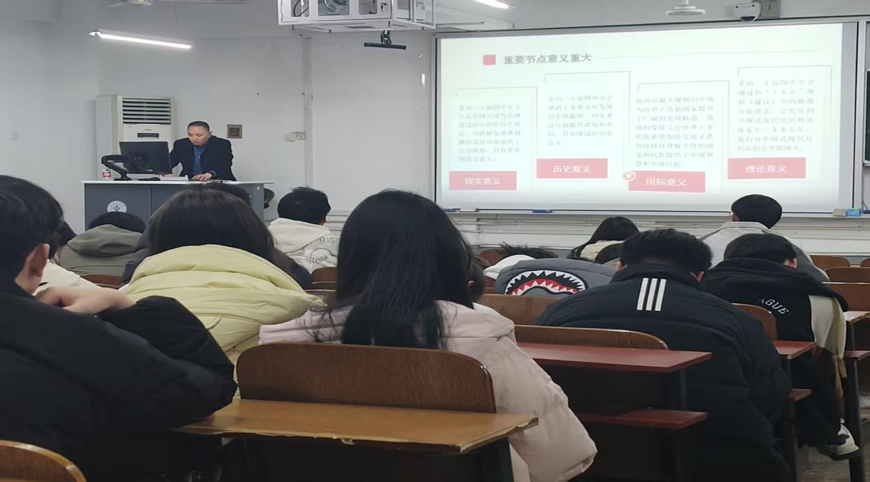 12月25日,设计艺术学院在3408教室举办党的二十届四中全会精神专题宣讲会。学院党委书记余忠担任主讲人,全体在校学生代表参加本次宣讲,现场学习氛围浓厚,理论宣讲与专业实践深度融合,取得良好育人效果。