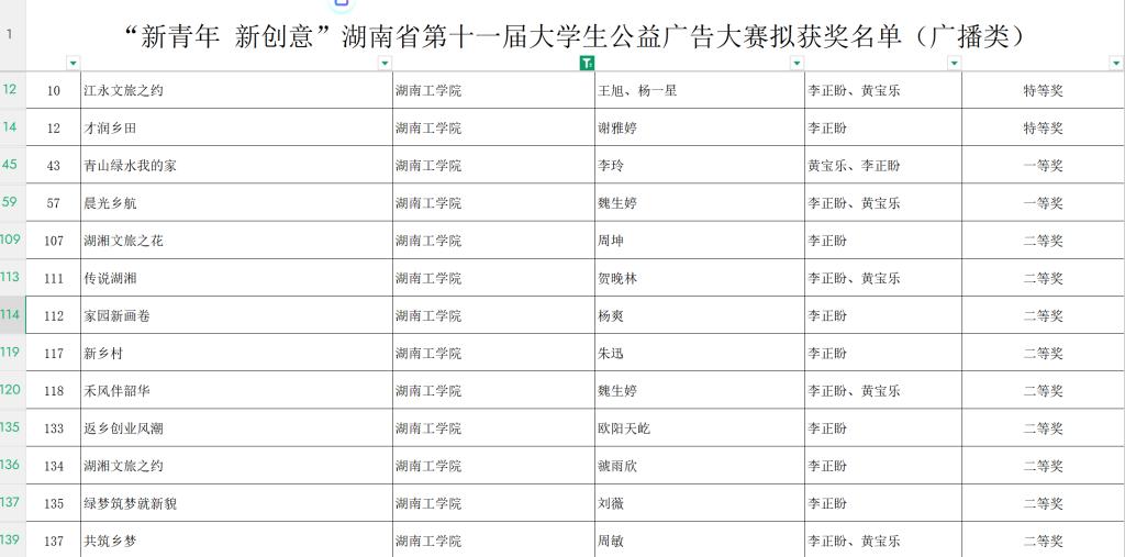 本次参赛学子聚焦公益议题,创作出兼具思想性、艺术性的影视、广播、策划、平面类作品,用专业语言传递公益温暖,展现了湖工学子对社会责任的深刻理解和积极担当。尤其在广播类作品中,设计艺术学院通过“作业提升为作品”的改革形式实现了“以赛代训、以赛促学”的效果,总共提交成功的作业作品94件,获得省级三等奖及以上荣誉的作品43件,获奖率达到了45.7%。