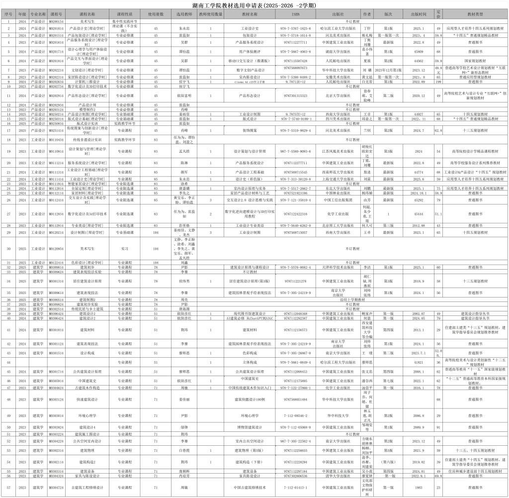 关于设计艺术学院2025-2026-2学期教材选用公示