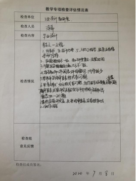 根据学校、学院发布的《关于开展2020届本科毕业设计(论文)专项检查工作的通知》的相关要求,我院提前就做好的相关工作部署。我院组织院督导组、教研室主任、教研室相关教师,在7月8号、7月17号进行了两次检查。