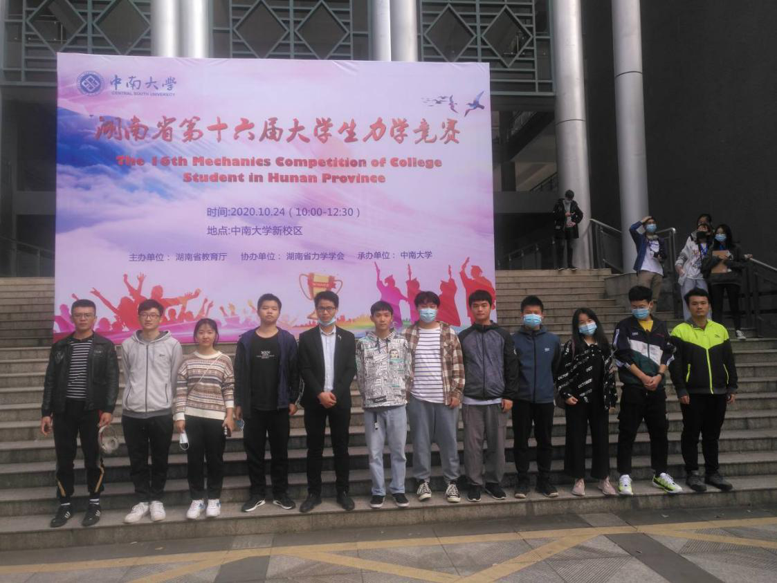 2020年10月24日,湖南省第十六届大学生力学竞赛在中南大学举行,共有来自全省25所高等院校的1046名学生参赛。此次比赛共设置一等奖51名,二等奖79名,三等奖120名,总共获奖人数250名。