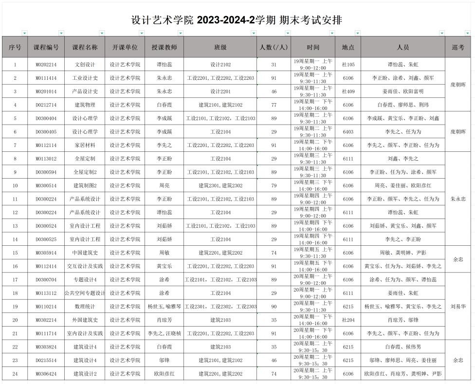 设计艺术学院 2023-2024-2学期 期末考试安排