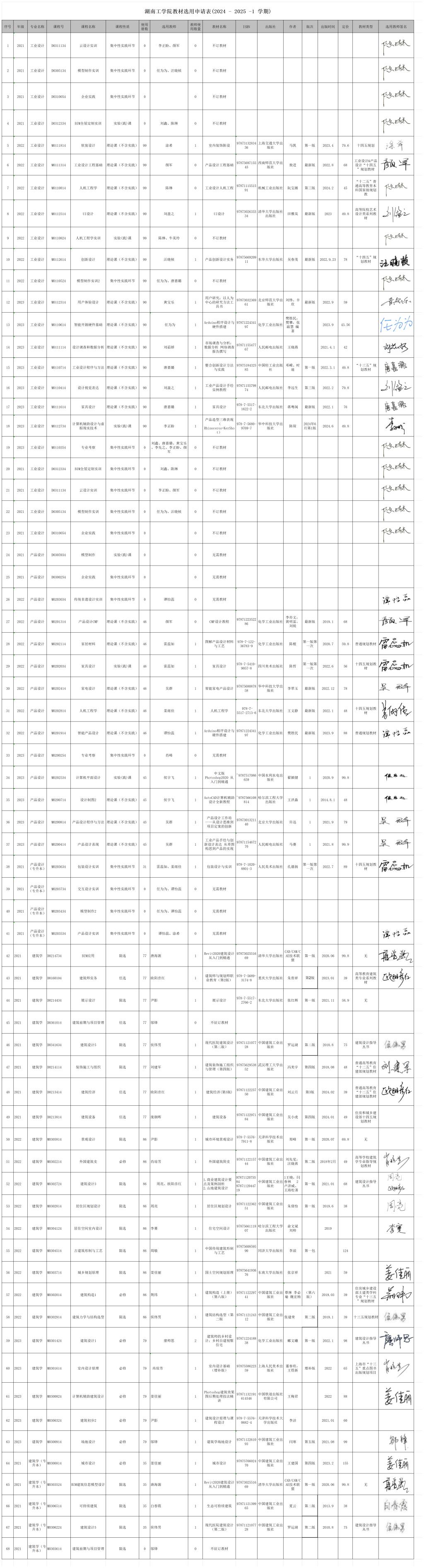 设计艺术学院2024-2025-1学期(21级-23级课程)选用教材目录公示