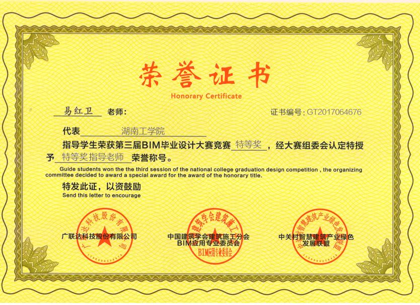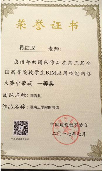 (3)2017年全国高校BIM施工项目管理应用技能大赛一等奖。