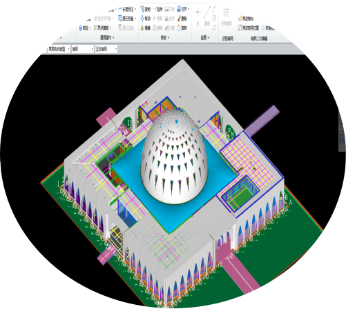 56个隽秀的花瓣形双层幕墙,Revit嵌板族参数复杂,运用犀牛对转角柱廊以及民族特色门廊异构建模。