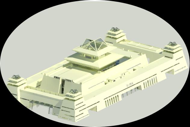 (1)斜柱斜墙造型独特、定位难度大, 采用内建体量方式,解决斜柱定位难的问题。