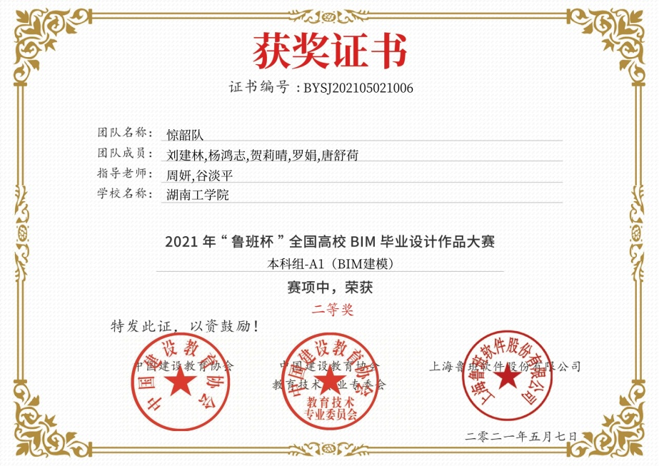 (2)“第五届全国高校BIM毕业设计大赛”全国二等奖。