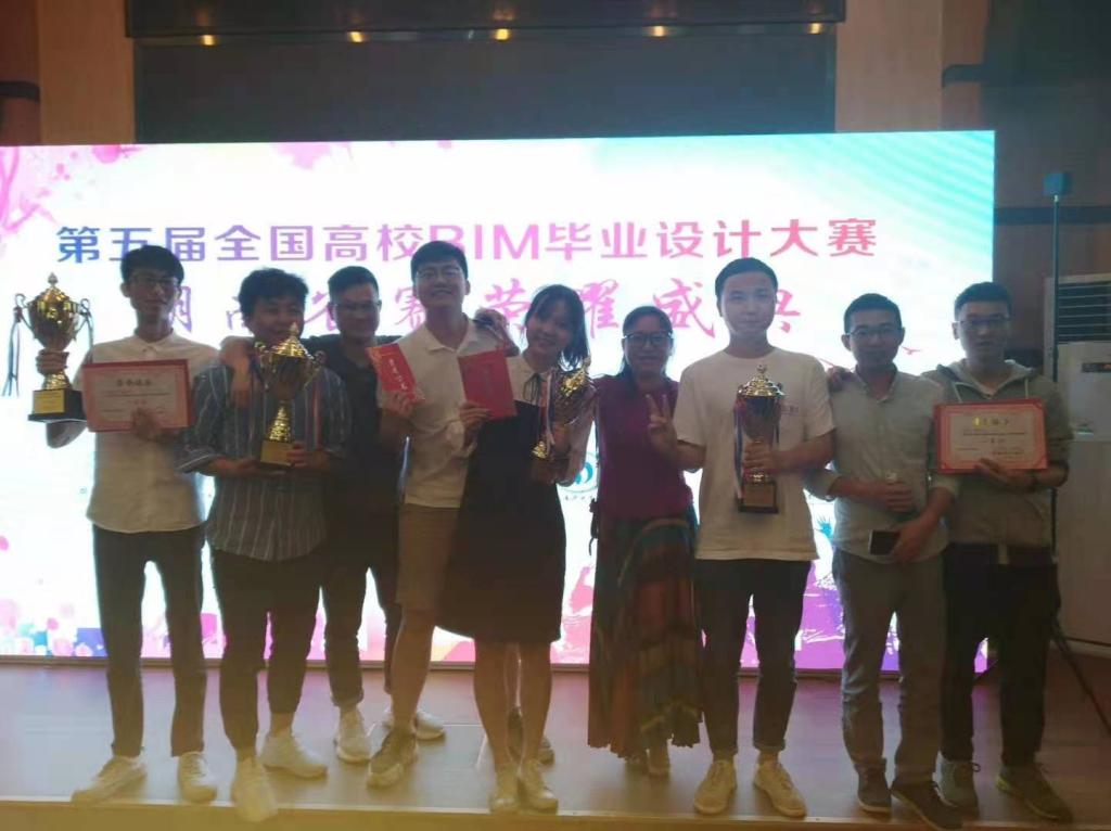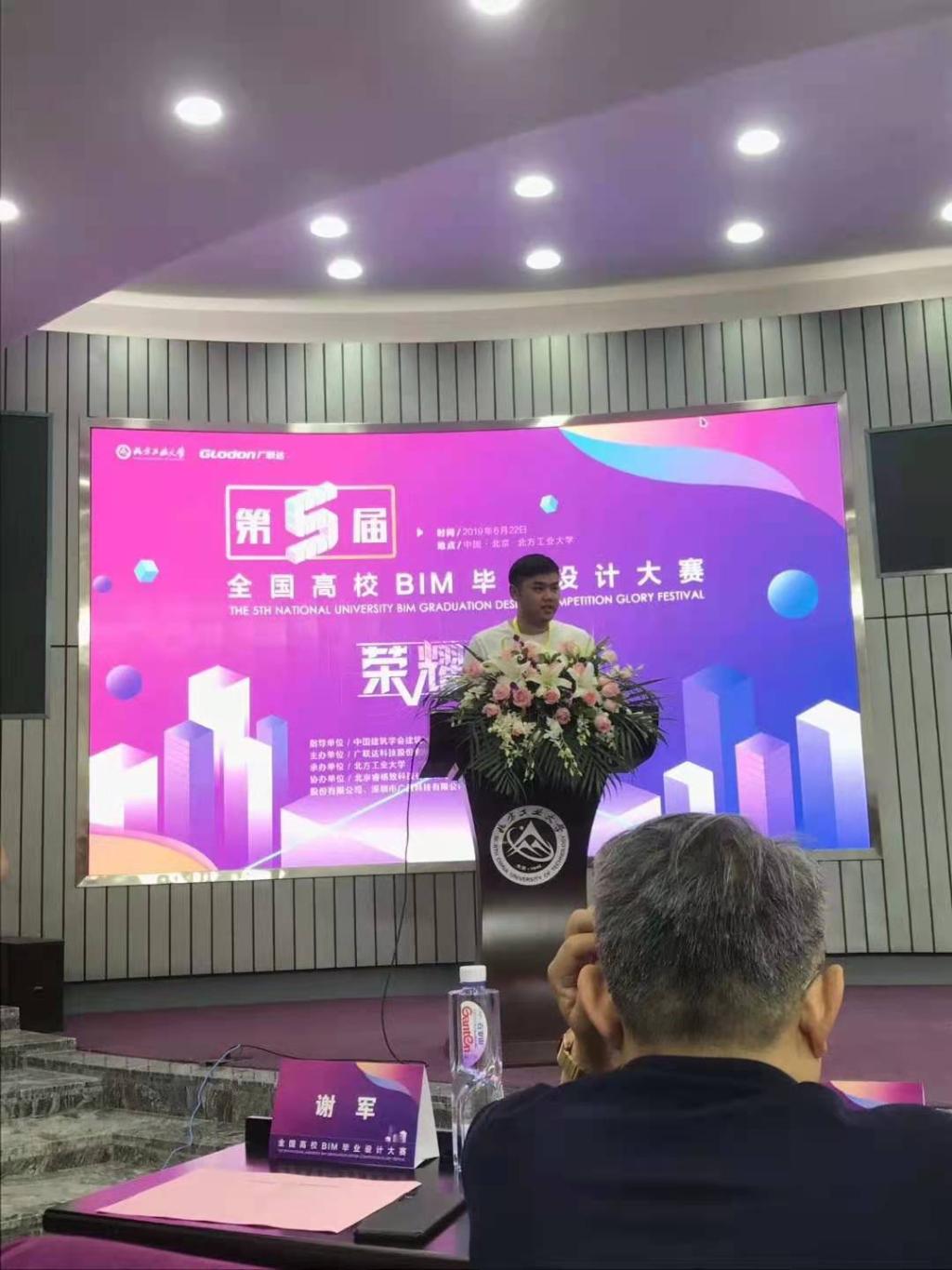 WilliamHill官网19届BIM三个团队19个成员在指导老师游春华、易红卫等带领下,经过大半年的刻苦学习,在“第五届全国高校bim毕业设计作品大赛”中喜获佳绩,荣获两个一等奖,一个二等奖,团队队长段龙同学受邀在北京颁奖大会面向全国300多所高校参赛师生分享经验。