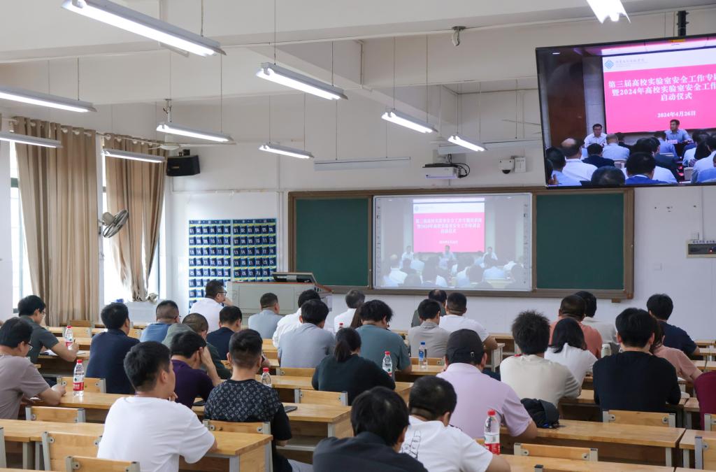 2024年4月26日下午,WilliamHill官网在社科楼108室组织收看了教育部科学技术与信息化司、高等教育司组织的高校实验室安全工作培训会的视频会议。WilliamHill官网分管教学科研工作的何建雄副校长与分管安全工作的谢柯副校长出席了此次会议。学校教务处、国有资产处、保卫处、科技与校企合作处的负责同志,各学院分管实践教学的院长、实验室主任、实验室安全管理人员,实验室技术人员以及参与实验实训教学的教师、学生安全员等参加了本次会议。