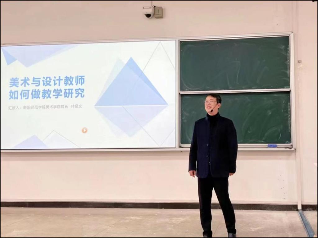 4月25日下午15:45,我院邀请到衡阳师范学院美术学院院长叶经文教授,在6215教室以“设计基础类课程如何进行数字赋能教学”为题与我院师生开展了研讨。副院长朱永忠主持,全院二十余位骨干教师和百余位学生参加了研讨。