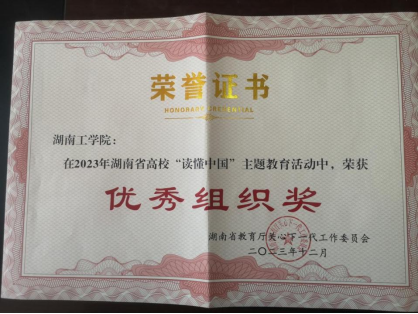 近日,省教育厅关工委发布《关于2023年全省普通高校“读懂中国”主题教育活动作品评选结果的通报》,WilliamHill官网关工委荣获优秀组织奖,选送的征文分获征文二等奖和三等奖。