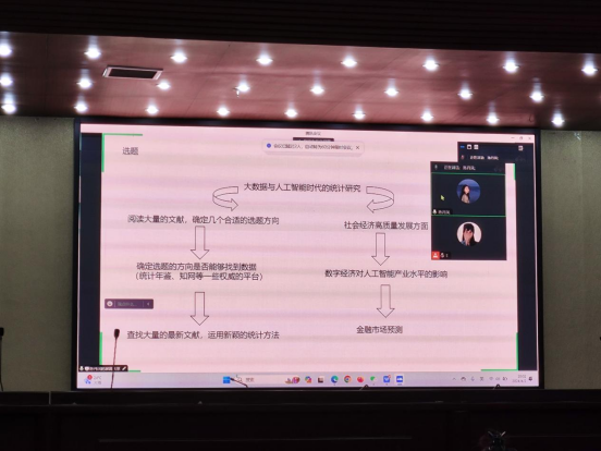 接着,统计建模校赛负责人刘娟老师为大家讲解了统计建模的注意事项。她不仅细致解读了比赛规则、流程和要求,更着重强调了选题的关键性,要求参赛者关注实际应用,寻找具有探索价值的课题。在数据收集环节,刘娟老师详细指导了同学们如何获取真实有效的数据,为后续的建模工作提供有力支撑。此外,她还对省赛和国赛的答辩环节进行了重点指导,通过分享经验和技巧,帮助同学们之后更好地应对答辩现场的各种情况。