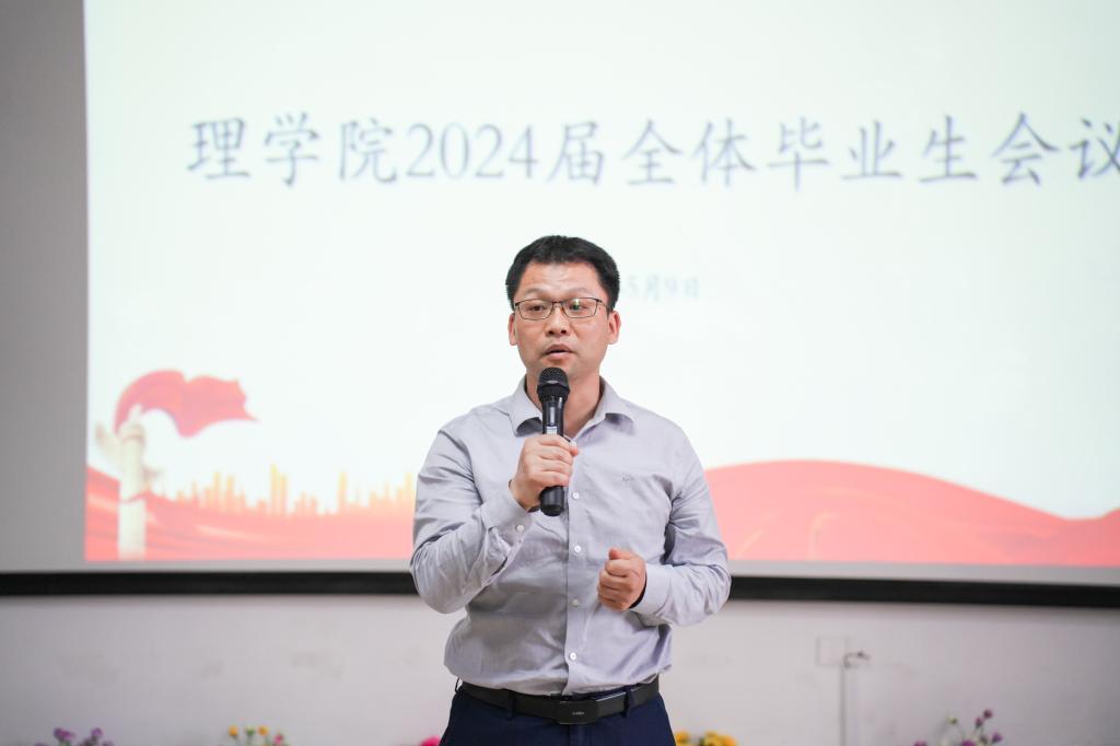 5月9日下午,理学院在数理楼608召开2024届全体毕业生会议。学院党委书记刘璟忠、副院长谢忠祥、副院长邓元祥、党委副书记傅娜、学工办主任兼分团委书记张艳霞、教研室主任刘娟和全体毕业生参加本次会议。