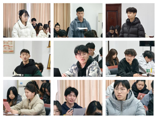 经典共读环节掀起活动高潮。《七律·长征》《卜算子·咏梅》《沁园春·长沙》三首经典诗词被齐声诵读,激昂顿挫的语调中饱含青春豪情。不少学子分享站在橘子洲头时的切身感悟:既有重读“问苍茫大地,谁主沉浮”时深感青年毛泽东的壮志豪情,从而愈发坚定扎根家乡和报效祖国的决心的赤诚流露;也有从“恰同学少年,风华正茂”中读懂青春当敢想敢为、纵使身处低谷亦要永葆自信锐气的深刻体悟;正在考研的同学则结合自身经历畅谈从“俏也不争春,只把春来报”中汲取的坚韧力量。同学们各抒己见,红色诗词的精神内核在交流分享中愈发清晰。
