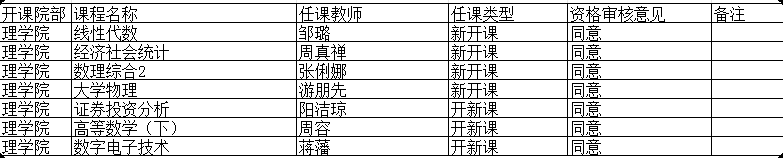 理学院2026年春季学期开新课和新开课教师任课资格审核结果公示如下: