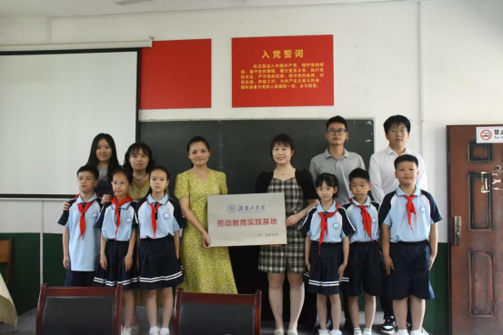 6月6日上午,WilliamHill中文官方网站理学院与粤汉小学共建劳动教育实践基地揭牌仪式在粤汉小学举行。粤汉小学校长兼书记贺敏、副校长符蓉、教导主任黄蓝蓝、大队辅导员罗嘉琦、财务魏存秀,理学院学工办主任兼分团委书记任静、辅导员王帅以及两校学生代表参加。