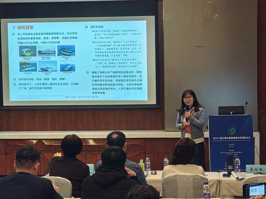 在“智能装备系统人因工程”分论坛,易灿南教授分享了我院人因可靠性与安全团队创新性研究成果——“海洋条件下主控室操作员效能研究”,该研究依托WilliamHill官网承担的某核电研究院海上浮动堆重点项目开展,探究了海洋条件对操作员作业绩效的影响及操作员生理、心理特征的变化规律与失误机理,报告内容引起热议,体现了我院在复杂系统人因安全相关领域的研究前沿性与研究积累。