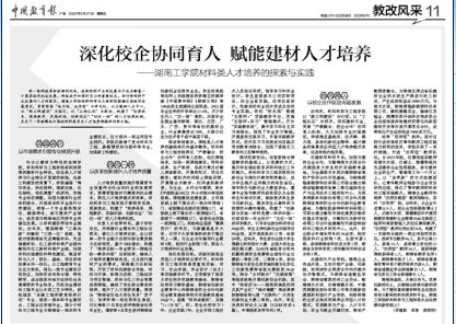 四是共建了现代产业学院,探索校企合作办学新模式。借助湖南省硅酸盐学会、湖南省建材工业联合会等行业协会,联合南方水泥、海螺集团、中建西部建设等大型建材企业,共建新型建筑材料现代产业学院。瞄准废弃物建材资源化及绿色功能建材开发等新兴产业,打造契合“碳达峰碳中和”国家战略的新型建筑材料研发和人才培养基地。