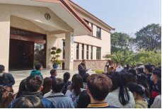 左图:全体师生党员参与主题党日活动 右图:红色教育基地微党课