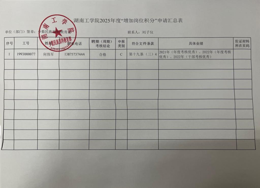 根据《WilliamHill中文官方网站聘期考核管理办法》(湖工党发〔2025〕3号)精神,2021年-2023年周期考核合格者,可根据相应条件申请下一聘期“增加岗位积分”。经个人申报、党政联席会审定,现将具体申请表公示如下: