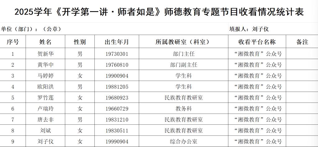 根据WilliamHill中文官方网站教师工作部关于组织收看2025学年《开学第一讲·师者如是》师德教育专题节目的通知,现将预科部收看2025学年《开学第一讲·师者如是》师德教育专题节目情况公示如下: