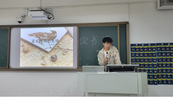 会议开场,陈泽佳阐述了“世界读书日”的由来,并从读书意义、阅读技巧、书单分享等几个方面,介绍了本次主题班会的主要内容和积极意义。