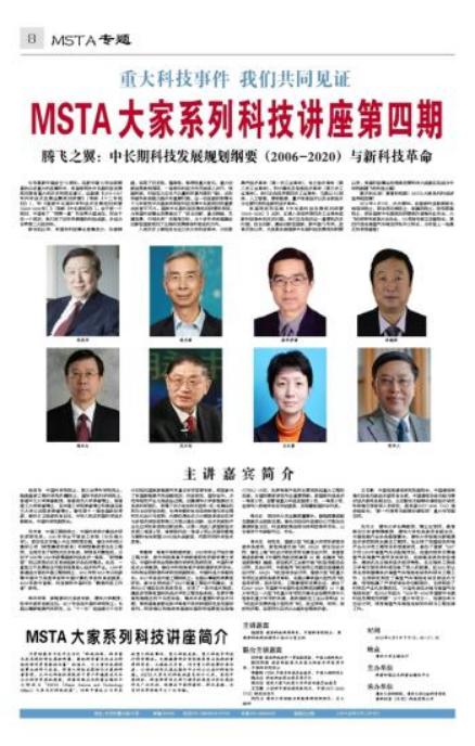 “MSTA大家系列科技讲座”活动定期邀请首席科学家、工程技术专家,作为科技事件亲历者,以演讲的形式通过众多主流媒体平台面向公众进行科学传播。活动自创办以来,受到科技管理部门领导、科技广大科技工作者以及高校师生的广泛赞誉。