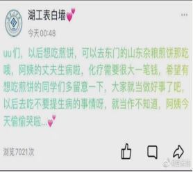 表白墙仅是号召同学去照顾一下生意,还约定买煎饼不提生病的事,没想到来的同学络绎不绝,有的人还在摊位提前帮起了忙。