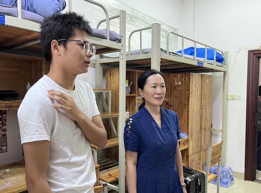 在新生宿舍,老师们与同学们亲切交谈,了解新生入校后住宿环境是否习惯、生活用品是否齐全、入学必办事项是否完成等情况。