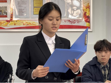 新团员代表工程造价2402班李菲同学在发言中表达了加入中国共青团组织的自豪与成长感悟,承诺将以团员标准严格要求自己,努力成为有理想、敢担当、能吃苦、肯奋斗的新时代好青年。