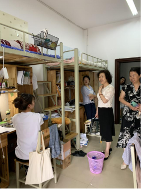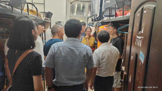 6月9日下午,建工学院院长张敏、党委书记曹毅、副院长甘英明、党委副书记唐晓雪、各教研室主任及全体辅导员走访了2021届毕业生宿舍。