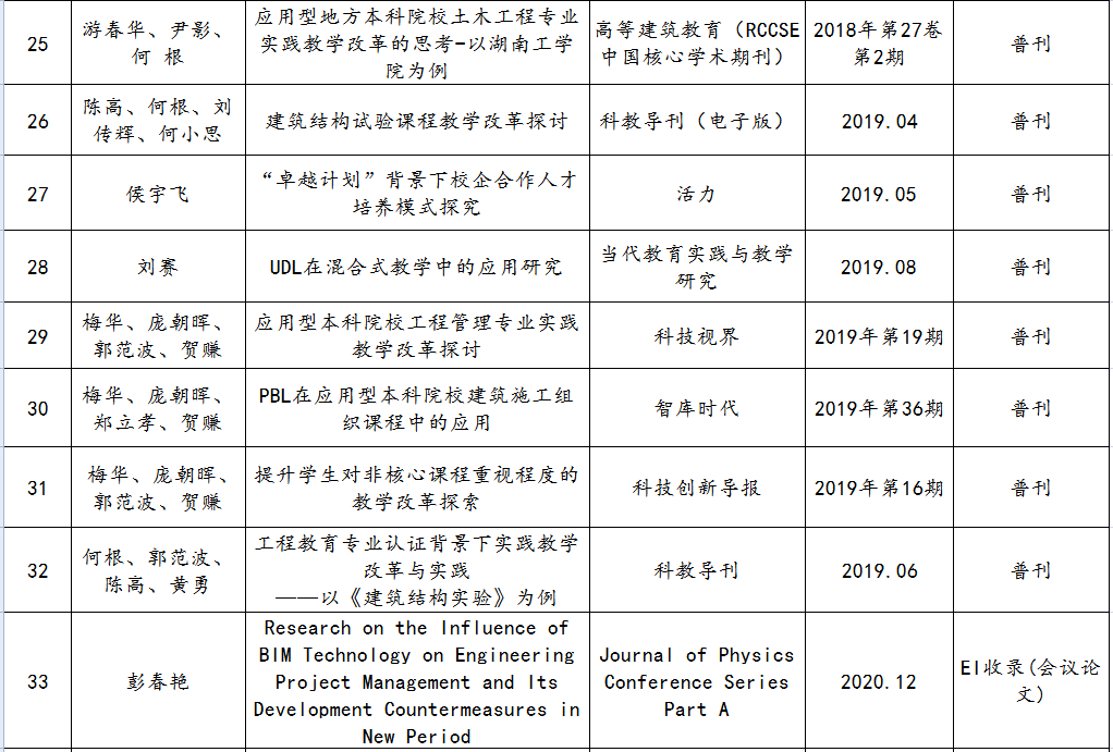 土木与建筑工程学院教师发表教研论文一览表(至2020年)