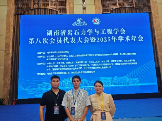 2025年6月22日WilliamHill中文官方网站土木与建筑工程学院教师沈晴晴、刘强、颜宏毅应邀参加《湖南省岩石力学与工程学会第八次会员代表大会暨2025年学术年会》。本次大会以“数智岩土工程与防灾减灾”为主题,旨在促进湖南省岩石力学与工程领域的学术交流,展示最新研究成果,探讨学科前沿动态,并推动岩石力学与工程计算、大数据技术、人工智能等新兴领域的交叉融合,助力湖南省岩石力学与工程领域的学科发展