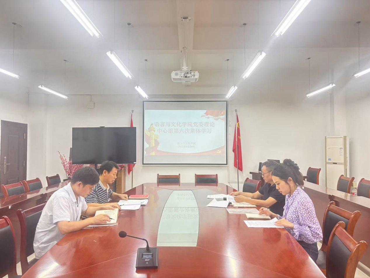 6月24日下午,语言与文化学院党委理论学习中心组在外语楼317会议室举行2025年度第六次集体学习。党委书记蒋志刚主持会议,院党委理论学习中心组全体成员参加了学习。