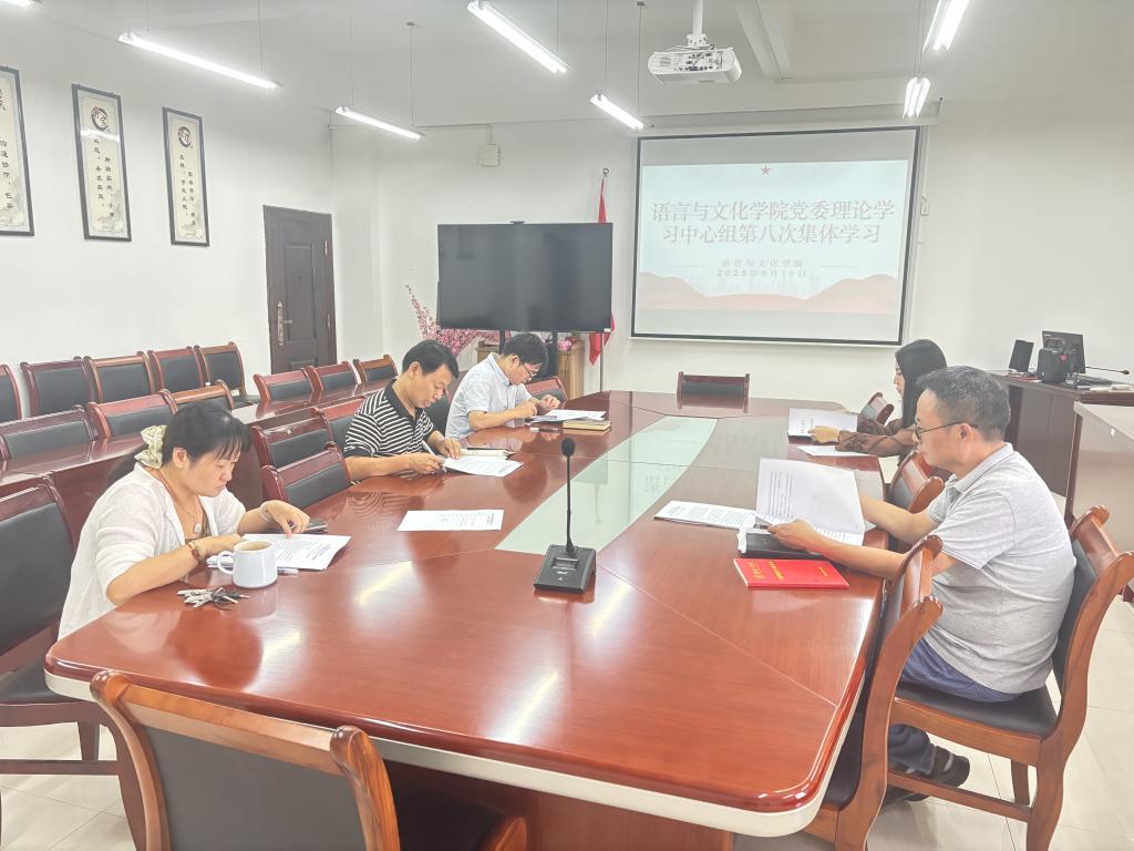 9月10日下午,语言与文化学院党委理论学习中心组在外语楼317会议室举行2025年度第八次集体学习。党委书记蒋志刚主持会议,院党委理论学习中心组全体成员参加了学习。