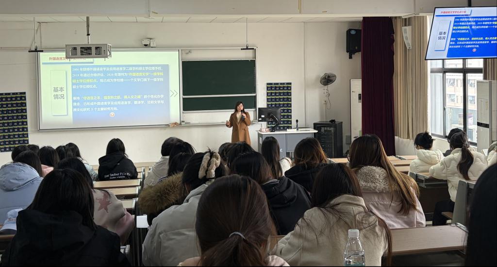 为帮助学生精准把握考研方向、提升备考效率,3 月 17 日下午,湖南农业大学人文与外语学院应邀来院开展研究生招生宣讲会。本次会议由语言与文化学院副院长谢争艳主持,有考研意向的学生参加了本次活动。