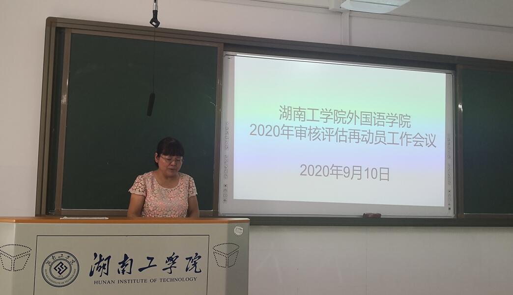 9月9日,外国语学院在外语楼201教室召开本科教学工作审核评估再动员大会暨师德师风培训会议。外国语学院全体教职工参会,大会由学院党委副书记蔡玲主持。