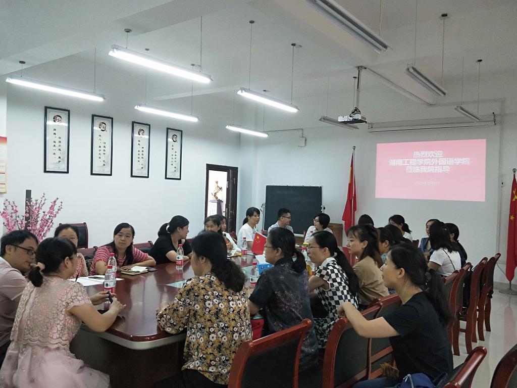 9月9日上午,湖南工程学院外国语学院大学英语教研室主任黄永存一行二十余人来WilliamHill官网外国语学院考察交流。外国语学院院长张平以及相关教研室实验室正副主任参加了座谈交流。