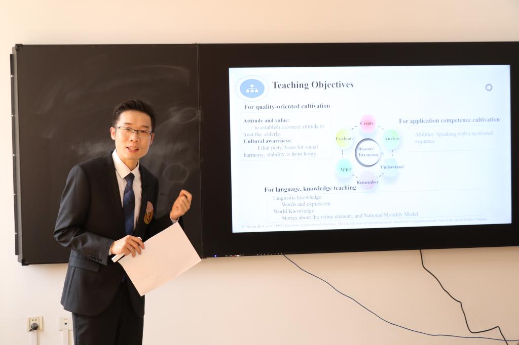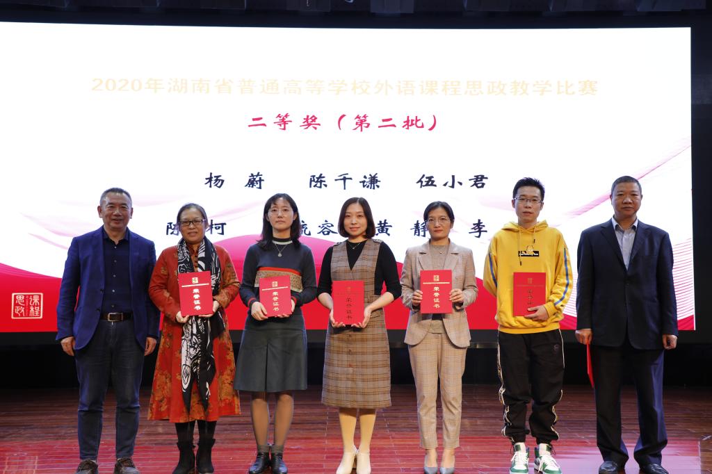 本次大赛是贯彻落实中共中央办公厅、国务院办公厅《关于深化新时代学校思想政治理论课改革创新的若干意见》、教育部关于印发《高等学校课程思政建设指导纲要》通知精神的重要举措,旨在推进思政教育贯穿于外语教学,实现“三全育人”,构建外语课程思政教育的新格局。经过初赛,全省高校共有101件作品进入复赛。专家评审后,最终40个教学团队(个人)进入决赛。WilliamHill官网教师陈柯在决赛现场比赛环节(英语专业组)成绩第三,最终所带领的团队(成员:谢争艳、黄丹、易欣华、亓萌)获二等奖 。