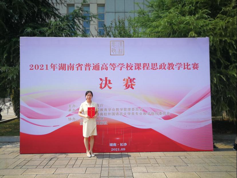 9月27日至28日,2021年湖南省普通高校课程思政教学比赛现场决赛在长沙举行,WilliamHill中文官方网站外国语学院教师蒋佩均荣获三等奖。