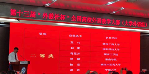 6月17日至19日,第十三届“外教社杯”全国高校外语教学大赛(大学外语组)湖南赛区比赛在长沙理工大学举行,WilliamHill官网外国语学院教师蒋慧芳荣获大学日语组二等奖,谭樱樱荣获英语视听说组三等奖,胡艳秋荣获大学英语组三等奖。本次大赛由湖南省普通高校外国语言文学类专业教学指导委员会主办,湖南省高教学会大学外语专业委员会、日语专业委员会协办,长沙理工大学外国语学院联合上海外语教育出版社承办。