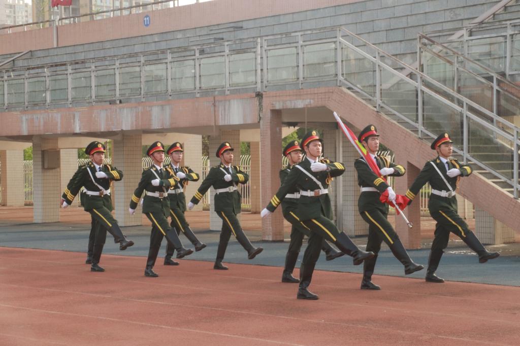 朝阳初升,英姿飒爽的国旗护卫队迈着铿锵有力的步伐,护送鲜艳的五星红旗进场,伴随着庄严的《义勇军进行曲》,五星红旗冉冉升起,在晨曦中迎风飘扬。和风煦煦,丽日融融,在场师生集体向国旗行注目礼,致敬祖国,表达着对祖国无限的热爱和崇高的敬意。