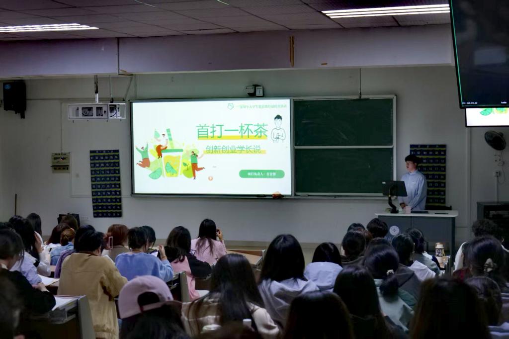 4月24日,外国语学院在外语楼612,举办了“语你同行”—创新创业学长说活动。活动邀请了我院入驻创业园孵化“首打一杯茶”项目负责人首景馨为同学们主讲,活动吸引了二百余名学生参加。
