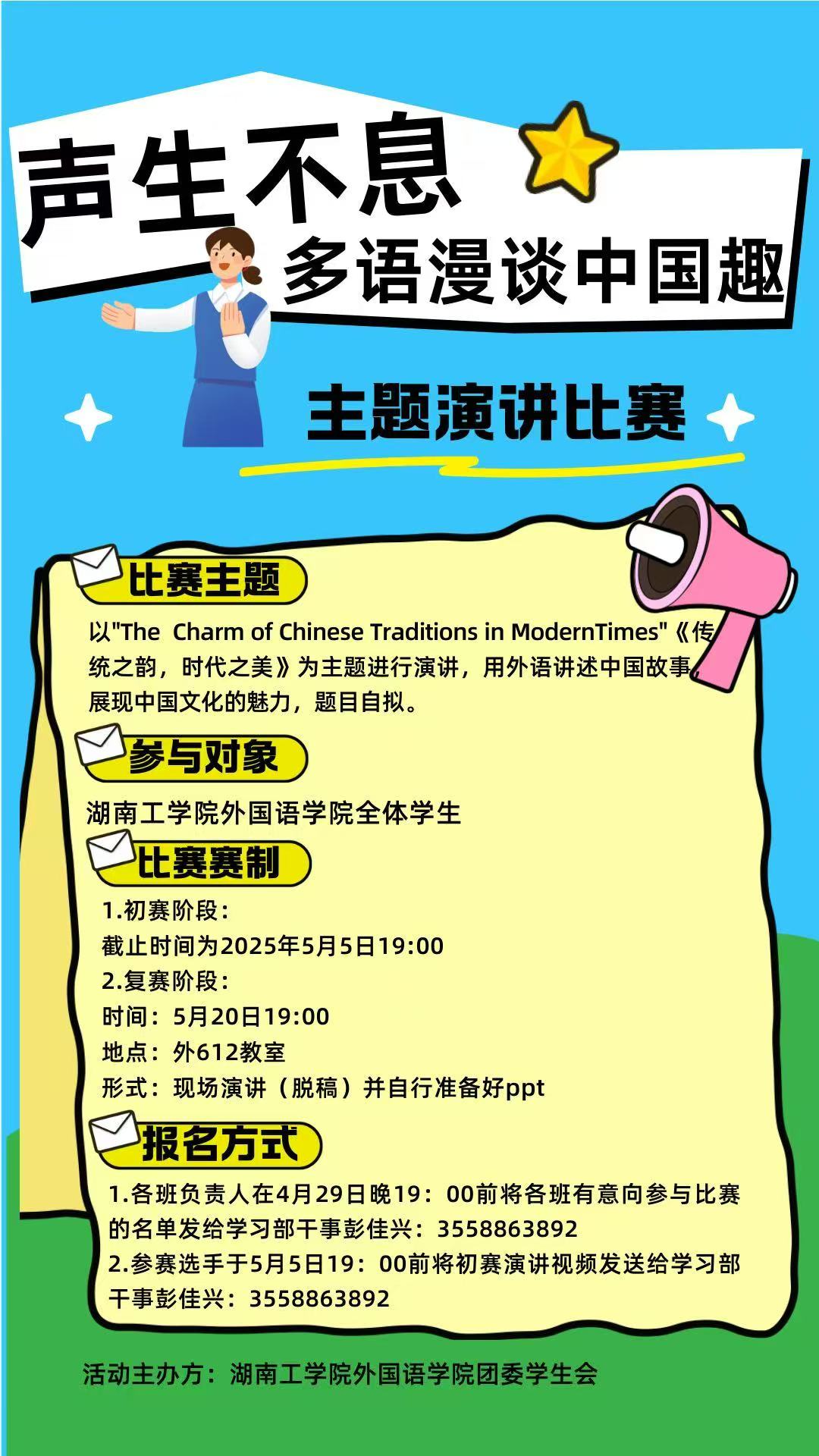 本次“声生不息,多语漫谈中国趣”演讲比赛是学院专业品牌活动之一,它成功地将思政教育、专业实践与文化传播融为一体。活动不仅锻炼了学生的语言应用与跨文化交际能力,更极大地激发了他们的民族自豪感与家国情怀,为培养具有“中国心、世界眼”的高素质外语人才奠定了坚实基础。(图文/语言与文化学院 一审/蒋蔚 二审/胡忠龙 三审/蒋志刚)