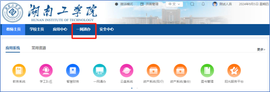 登录成功后,在信息门户首页导航栏中找到“一网通办”(下图红框中),点击后即可进入一网通办平台。