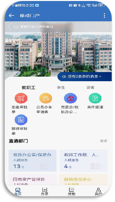 我们以后勤部门的“后勤报修”业务为例,来说明如何在移动端进行一网通办的业务申请,其他业务申请的操作流程基本和“后勤报修”的操作流程类似,只是在填写表单信息中,需要根据实际表单中要求的内容填写即可。